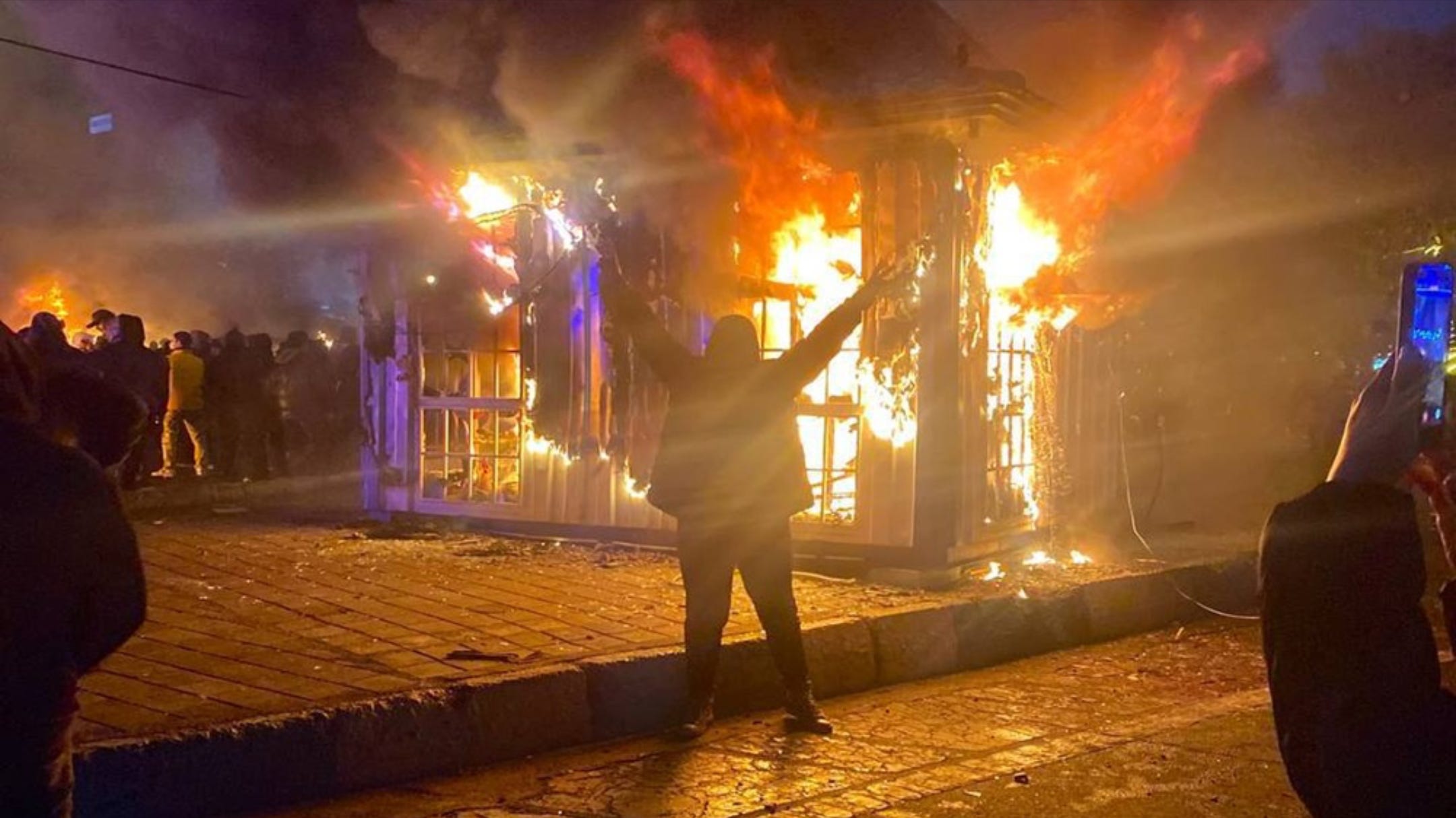 As always, whenever regime change is in the air, condemnations of Iranian repression are accompanied by the invocation of universal values: human rights, feminism, and democracy, and also denunciations of the left’s moral turpitude. Thus The Atlantic laments ‘The silence of the left on Iran’, while the National Review condemns the fact that ‘Iranians are being massacred to the sound of progressive silence.’ Sharing a picture (taken in Canada) of a woman lighting a cigarette with the burning picture of the Iranian Supreme Leader Ayatollah Ali Khamenei, Joanne Rowling tweeted: